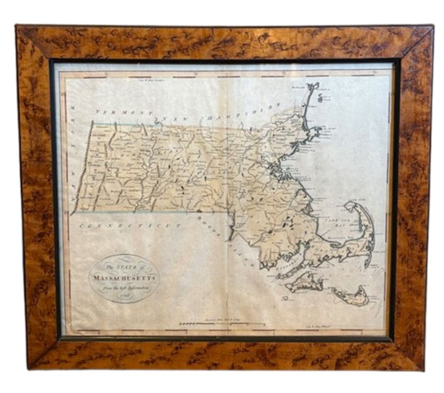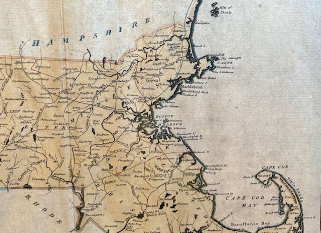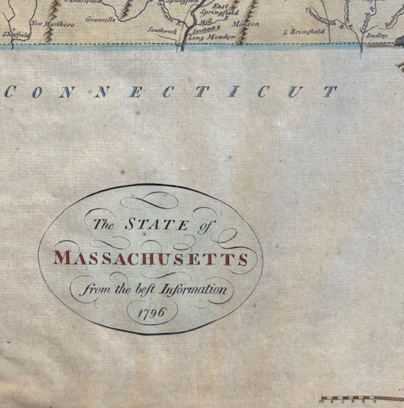 18th Century Hand Colored Map of The State of Massachusetts, 1796