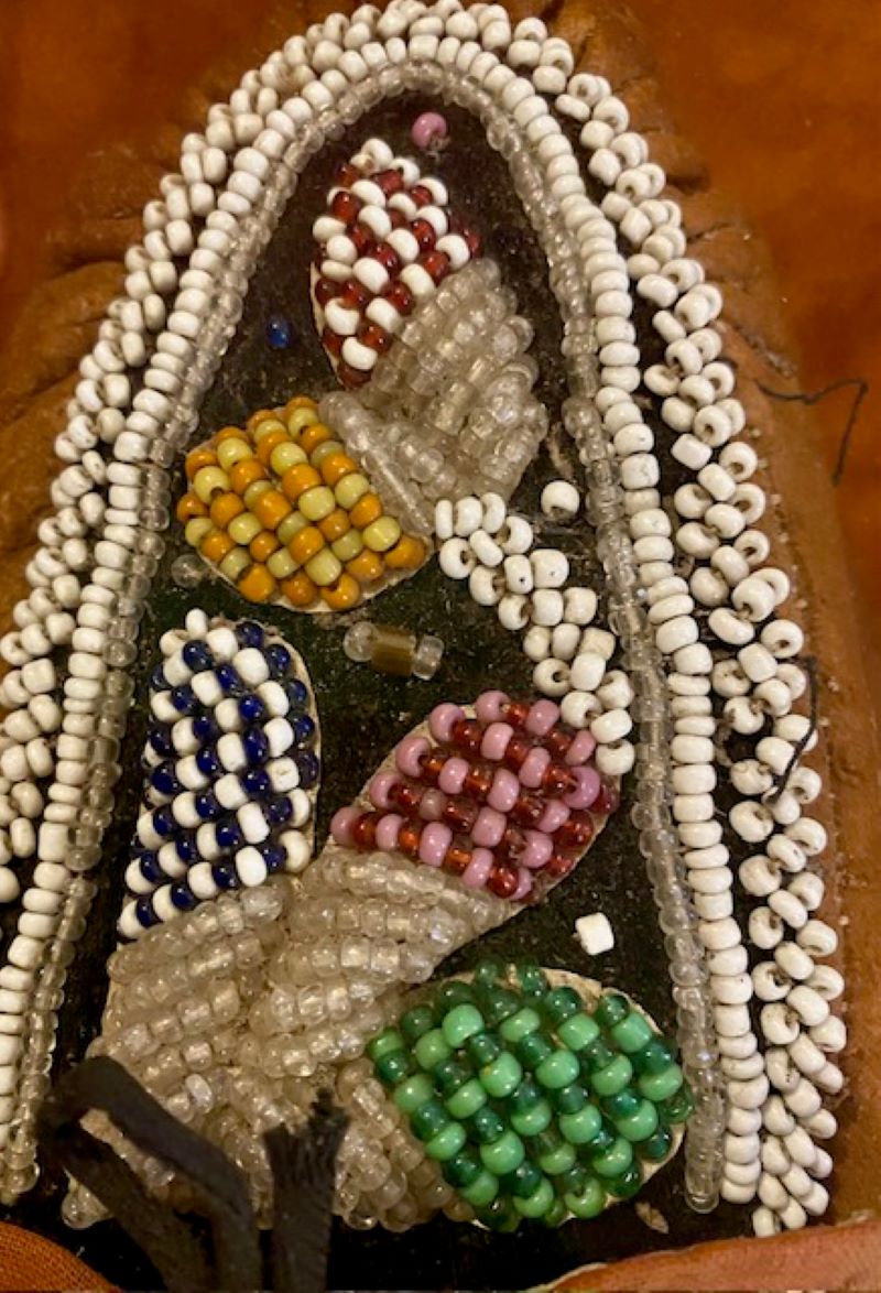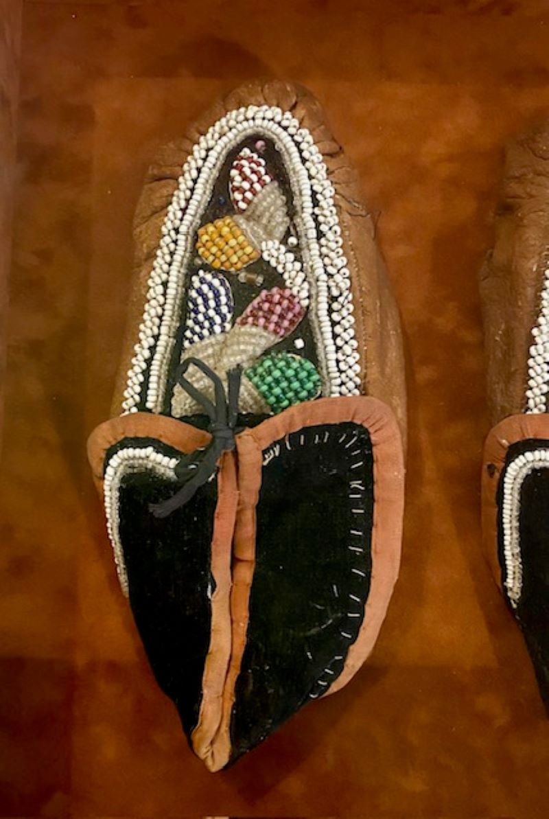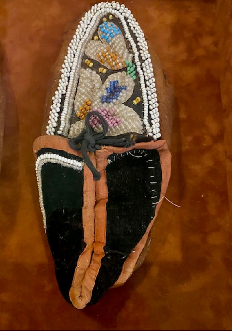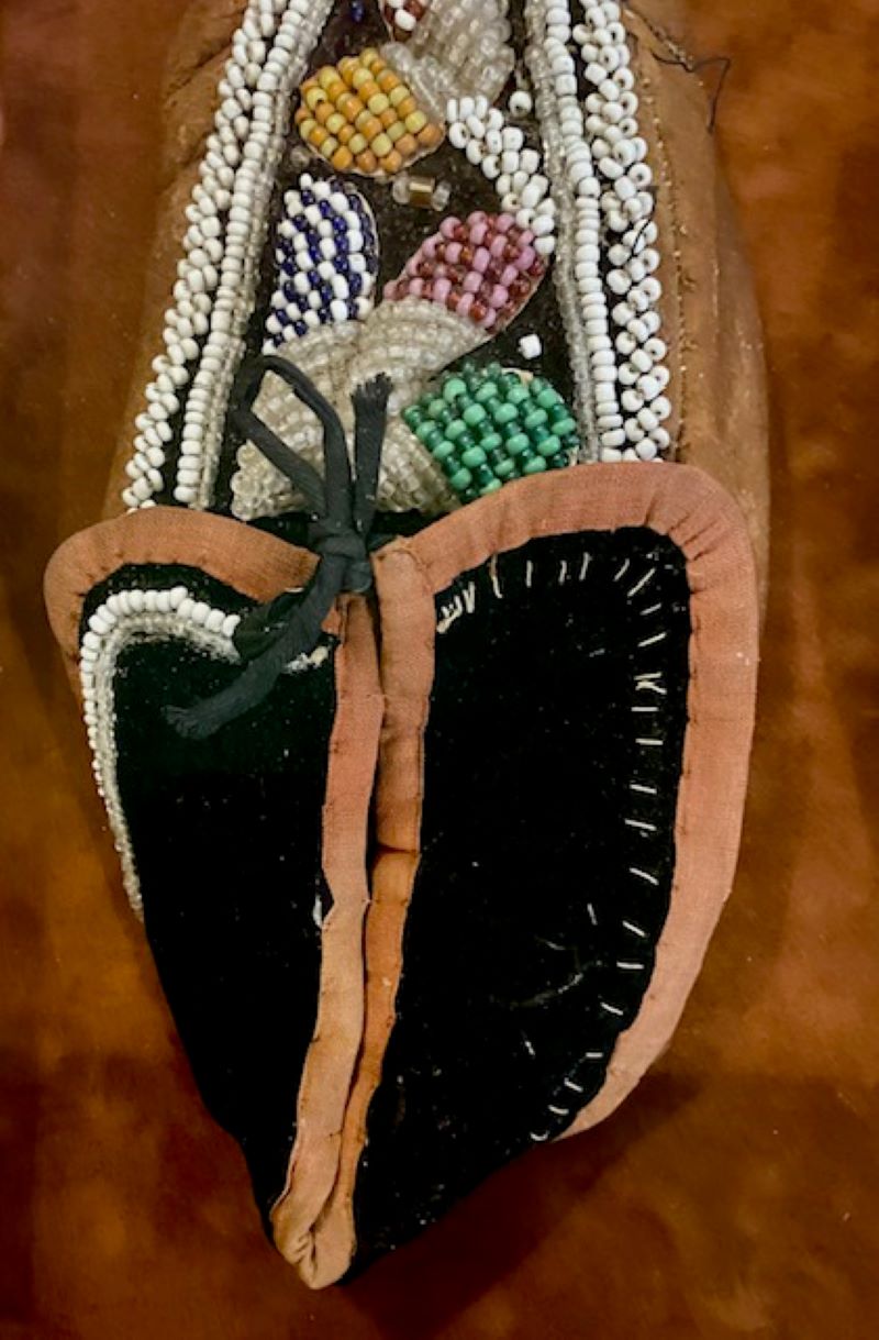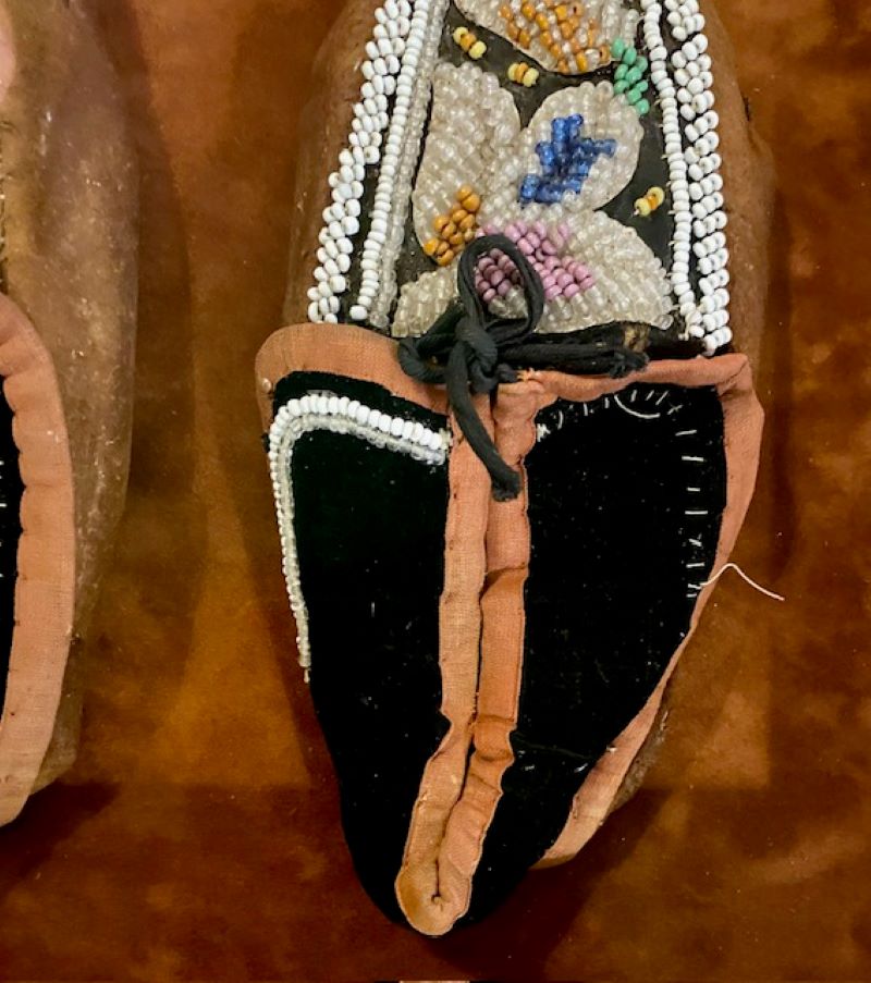 Moccasins from topside appear in good worn condition with no noticeable loss of beading.