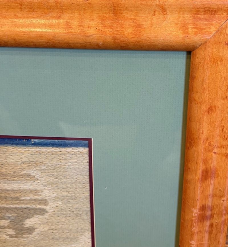 The woolie remains in great sound condition with no discernible damage, and the uniform fading over the years has created a lovely, mellow hue. It is mounted in a new bird’s eye maple frame.
