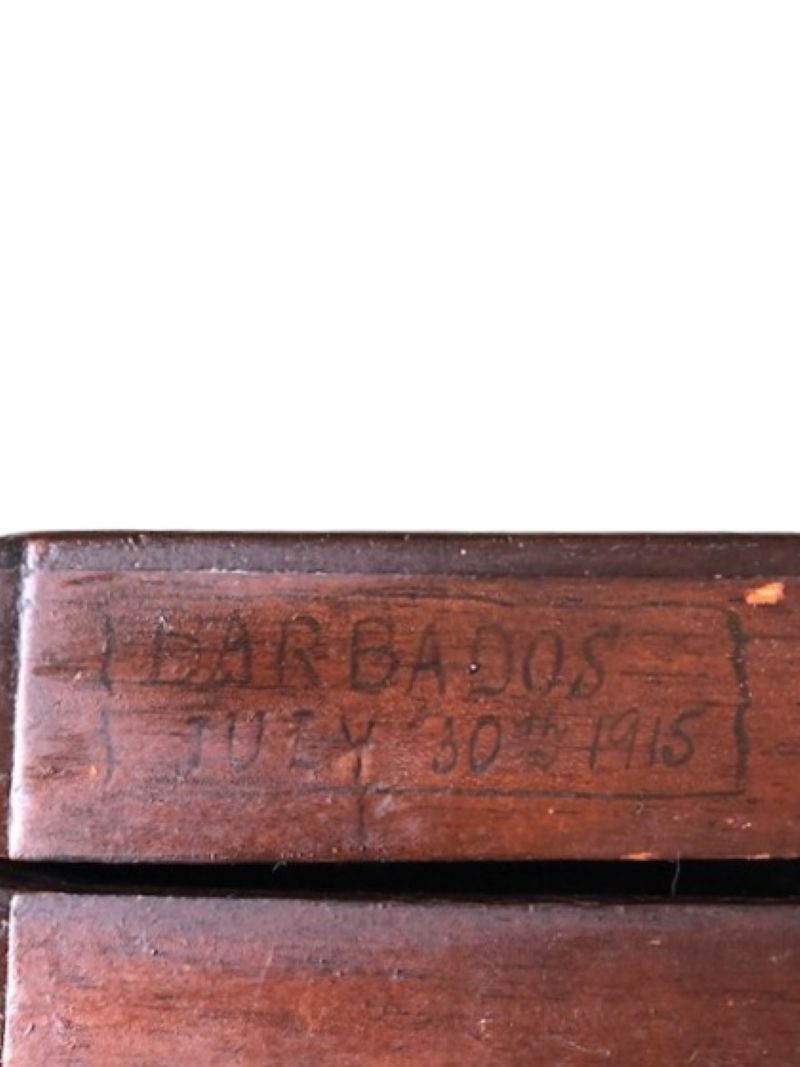 Most, if not all, of these objects were made on the island of Barbados, which was a very important seaport during this period. The main source for these shell pictures was the New Curiosity Shop, located in McGregor Street in Bridgetown, a popular shop where sailors would purchase souvenirs. It appears that the shop employed a large number of Barbadian women to make the valentines using local shells such as Barbados Keyhole Limpets and Rugose Slit Limpets ( both Fissurella barbadensis), the pelagic sea snails Janthinas (J. spp), and King Venus Clams (Lirophora paphia); none of these shells are from endangered species. Interestingly, the island women had a long tradition of creating beautiful designs from their local seashells, noted by visitors as far back as 1750. It is generally believed that the inspiration for the octagonal cases came from ship’s compass boxes.