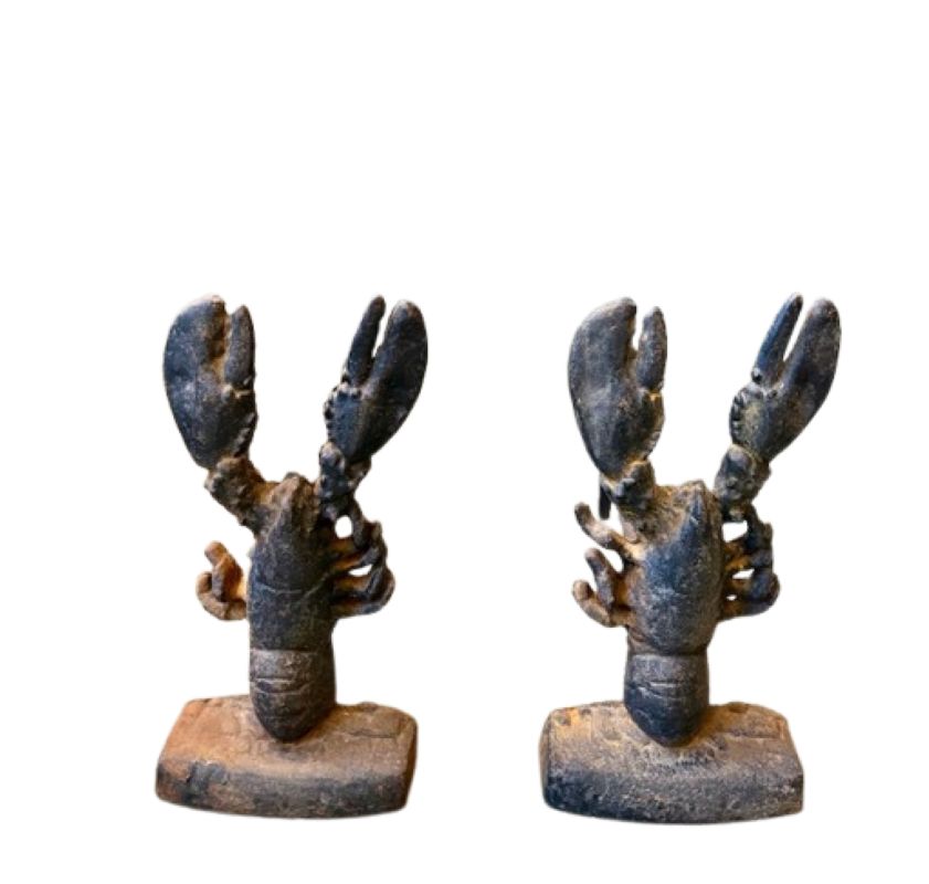 Early 20th Century Pair of Cast Iron Lobster Andirons