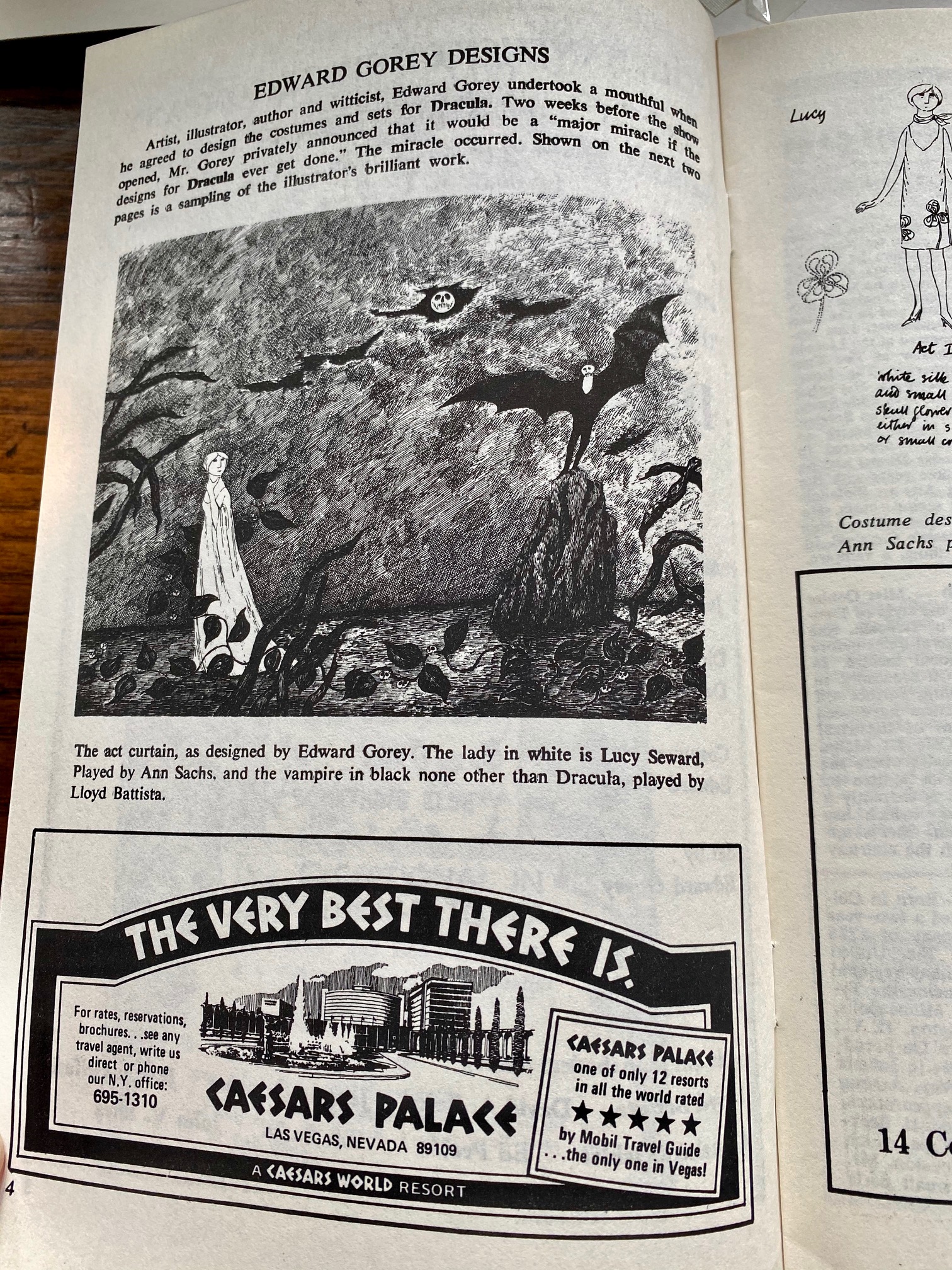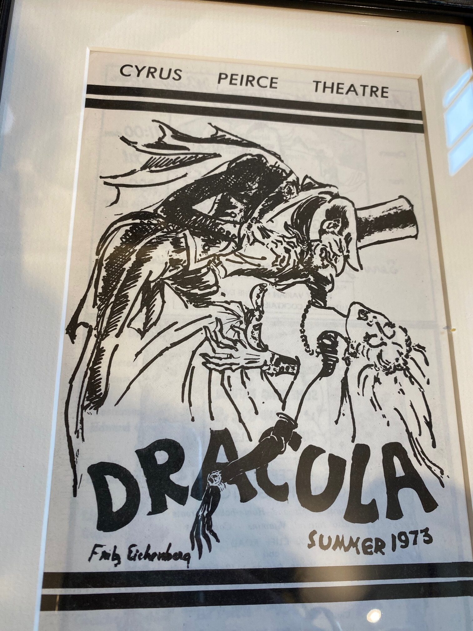 Original Program for the Nantucket Stage Company Production of “Dracula”, signed by Edward Gorey, 1973. The Nantucket Stage Company (which became the Straight Wharf Theatre, premiered this amazing production with stage sets and costume design by Edward Gorey, striking graphics by Fritz Eichenberg, directed by John Wulp and featurpmg John Shea in one of his earliest roles.