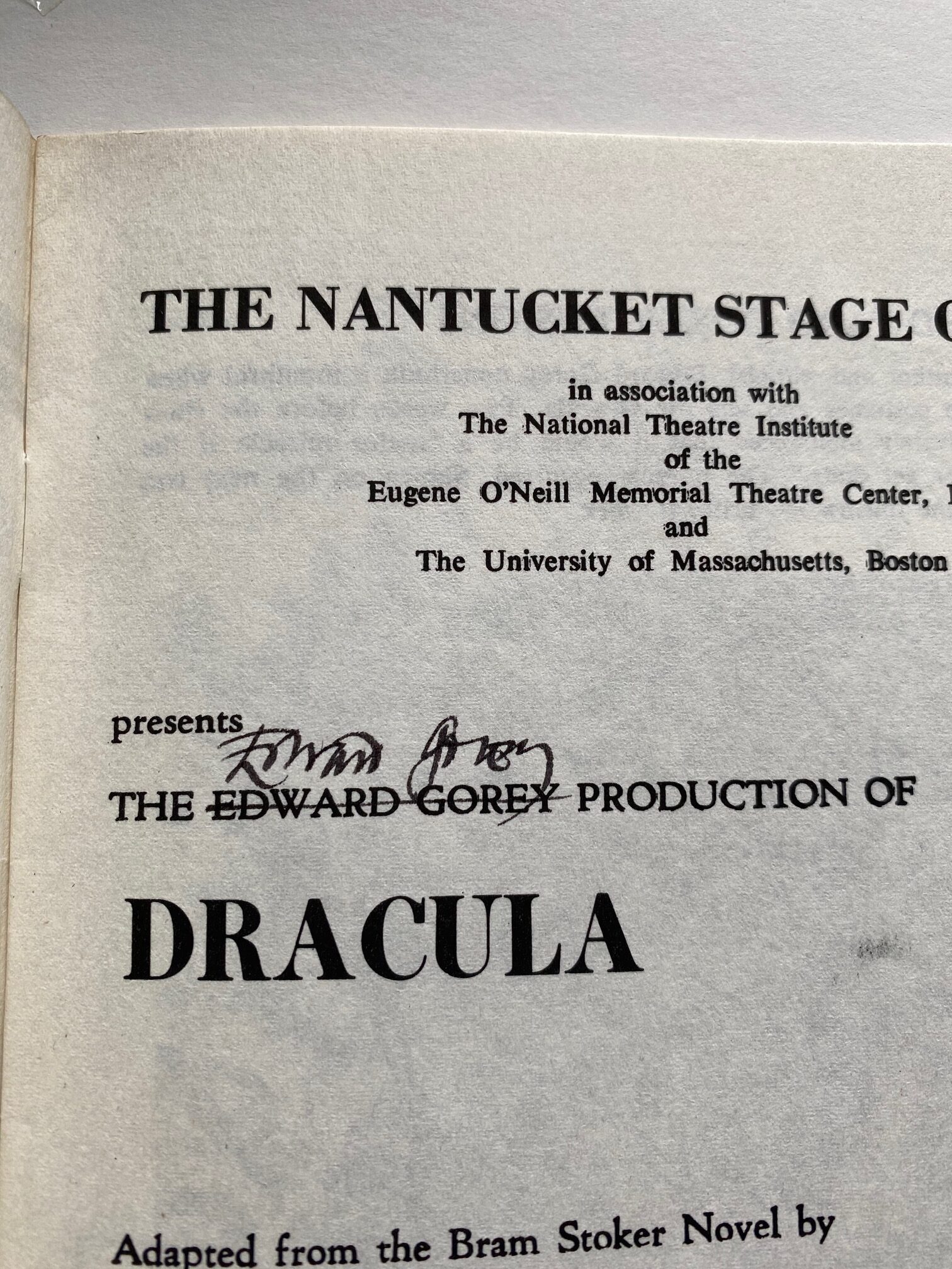 Original Program for the Nantucket Stage Company Production of “Dracula”, signed by Edward Gorey, 1973