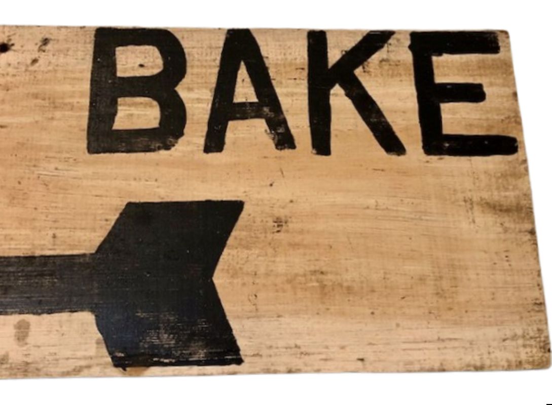 Vintage Clam Bake Sign, circa 1960s, a hand painted wooden trade sign for Clam Bakes.